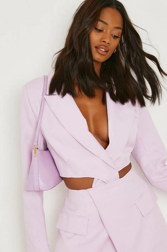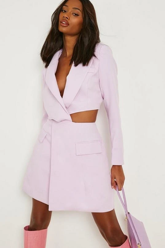 BOOHOO Tailored Tie Front Open Back Blazer Dress