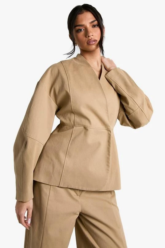 BOOHOO Tailored Twill Barrel Sleeve Blazer