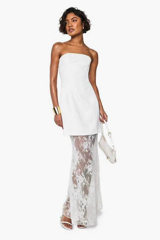 BOOHOO Tall 2 In 1 Lace Fit And Flare Maxi Dress