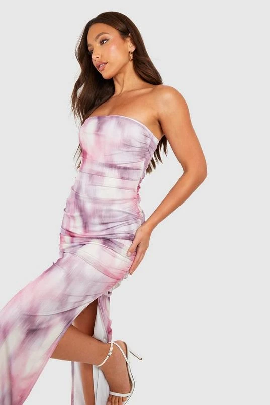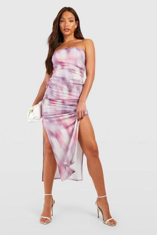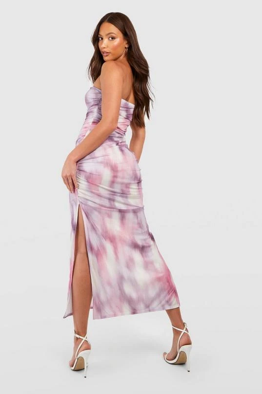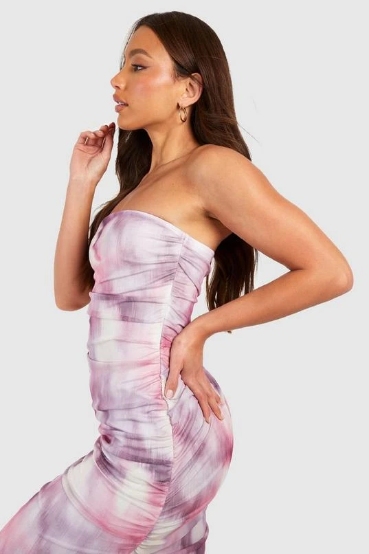 BOOHOO Tall Abstract Marble Ruched Side Midi Dress