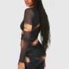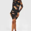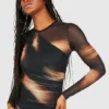 BOOHOO Tall Abstract Mesh Ruched Mini Dress