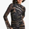 BOOHOO Tall Abstract Ruched Mesh MaxiDress