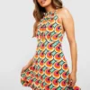 BOOHOO Tall Abstract Slinky Cowl Neck Midi Dress