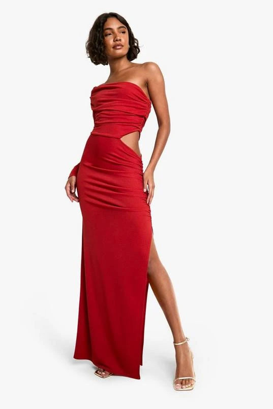 BOOHOO Tall Asymmetric Drape Detail Maxi Dress
