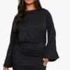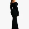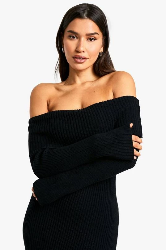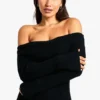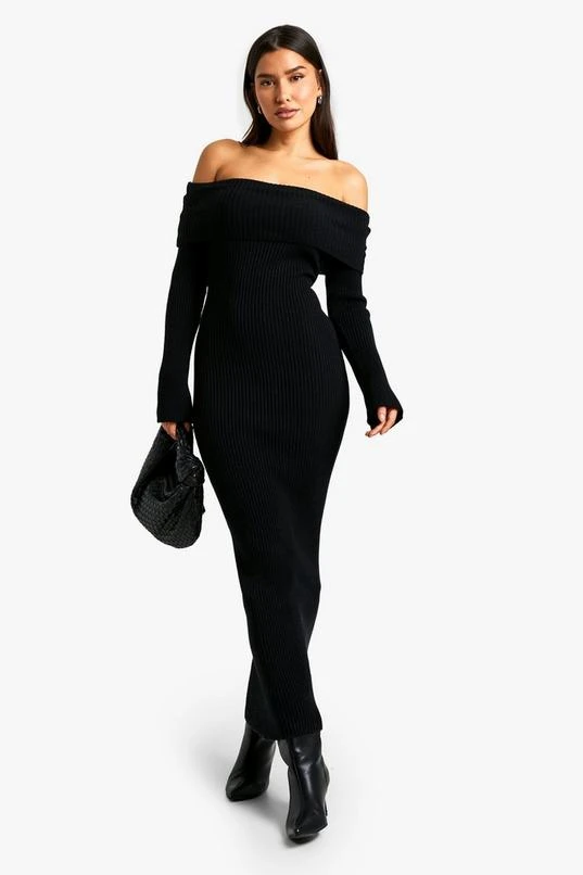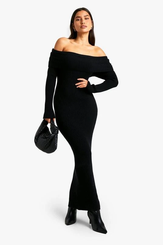 BOOHOO Tall Bardot Ribbed Knit Maxi Dress