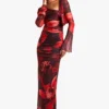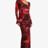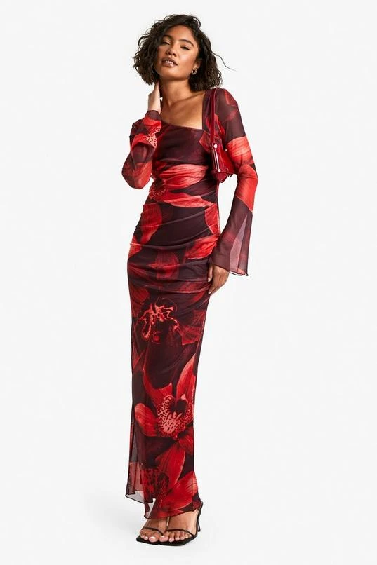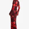 BOOHOO Tall Bold Floral Ruched Asymmetric Maxi Dress