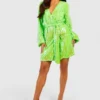 BOOHOO Tall Bright Wrap Over Sequin Dress
