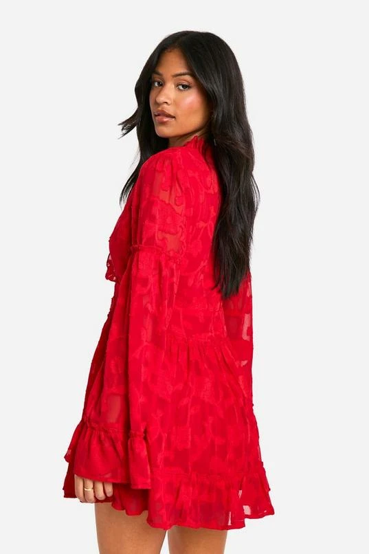 BOOHOO Tall Burnout Floral Ruffle Skater Dress