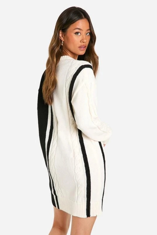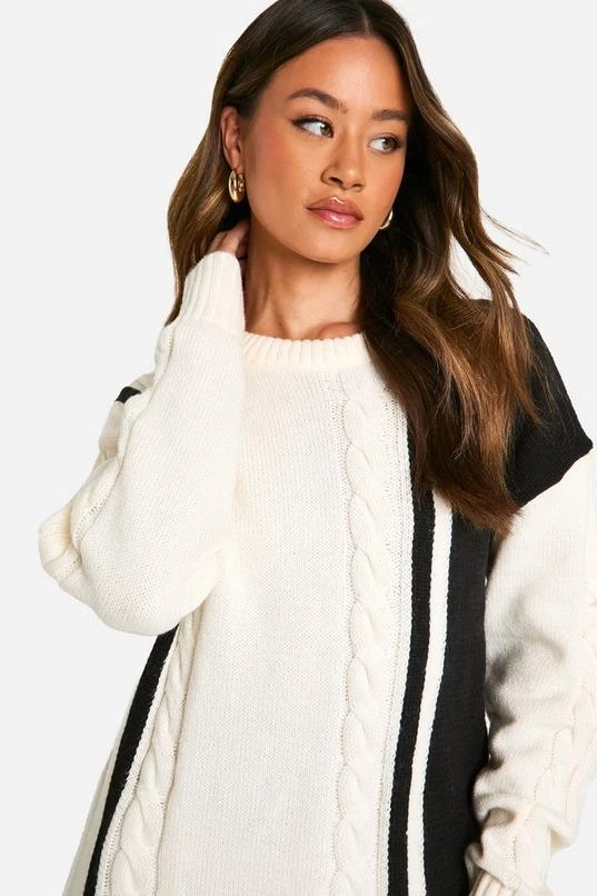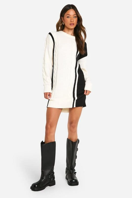 BOOHOO Tall Cable Knit Panel Detail Sweater Dress