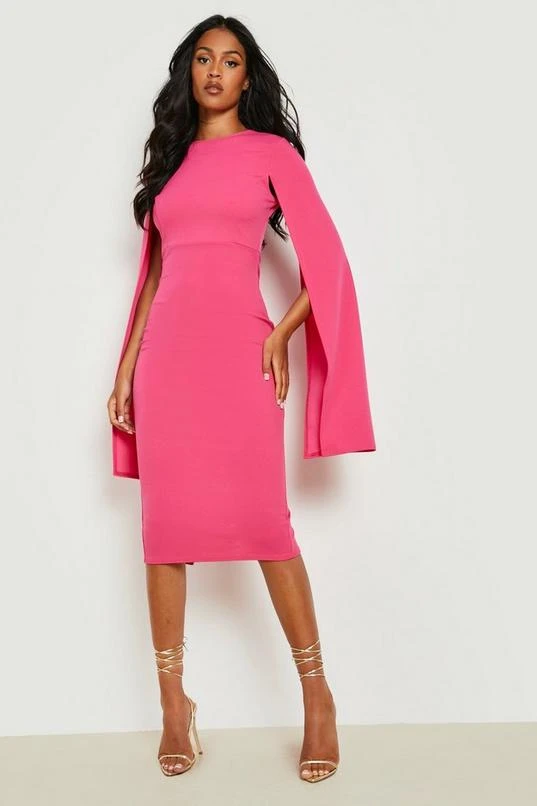 BOOHOO Tall Cape Sleeve Midi Bodycon Dress
