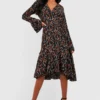 BOOHOO Tall Chain Print Wrap Midi Dress