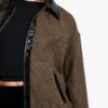 BOOHOO Tall Contrast PU Trim Wool Look Bomber Jacket