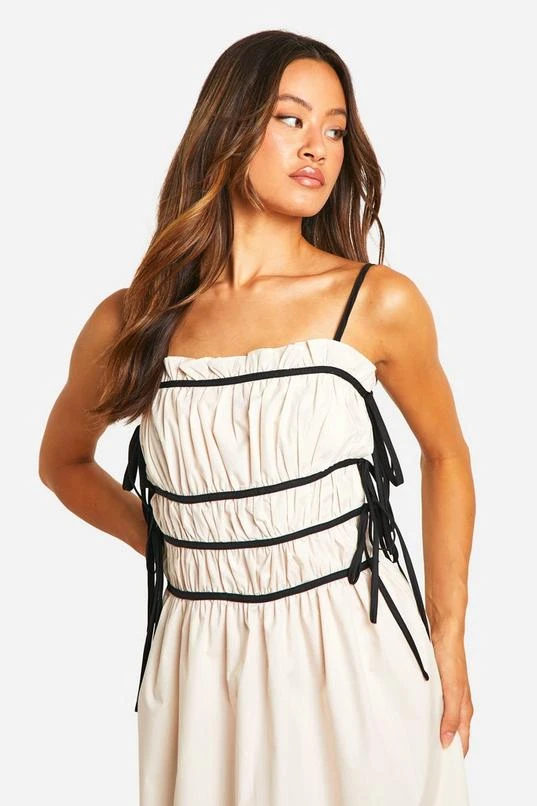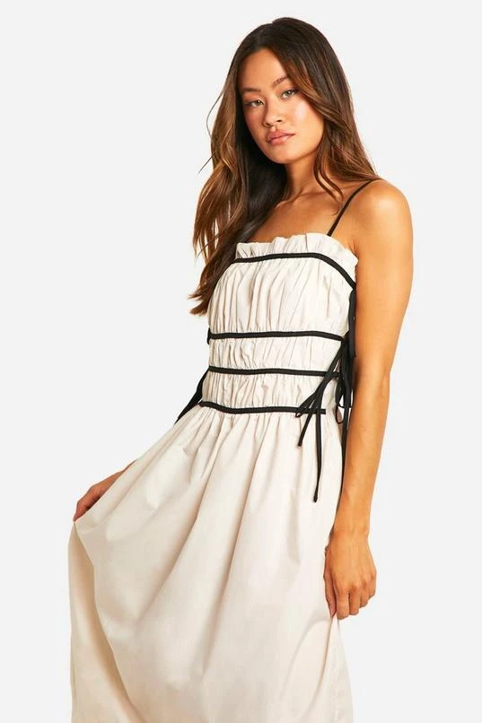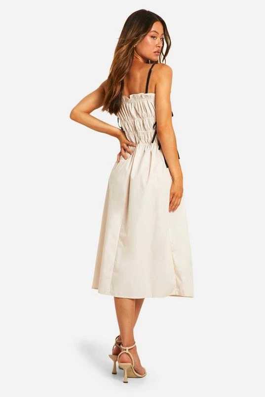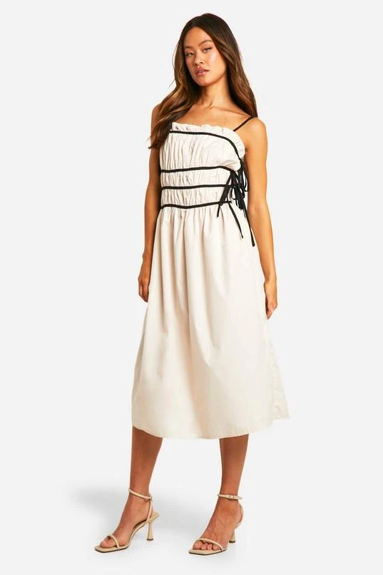 BOOHOO Tall Contrast Shirred Waist Midi Dress