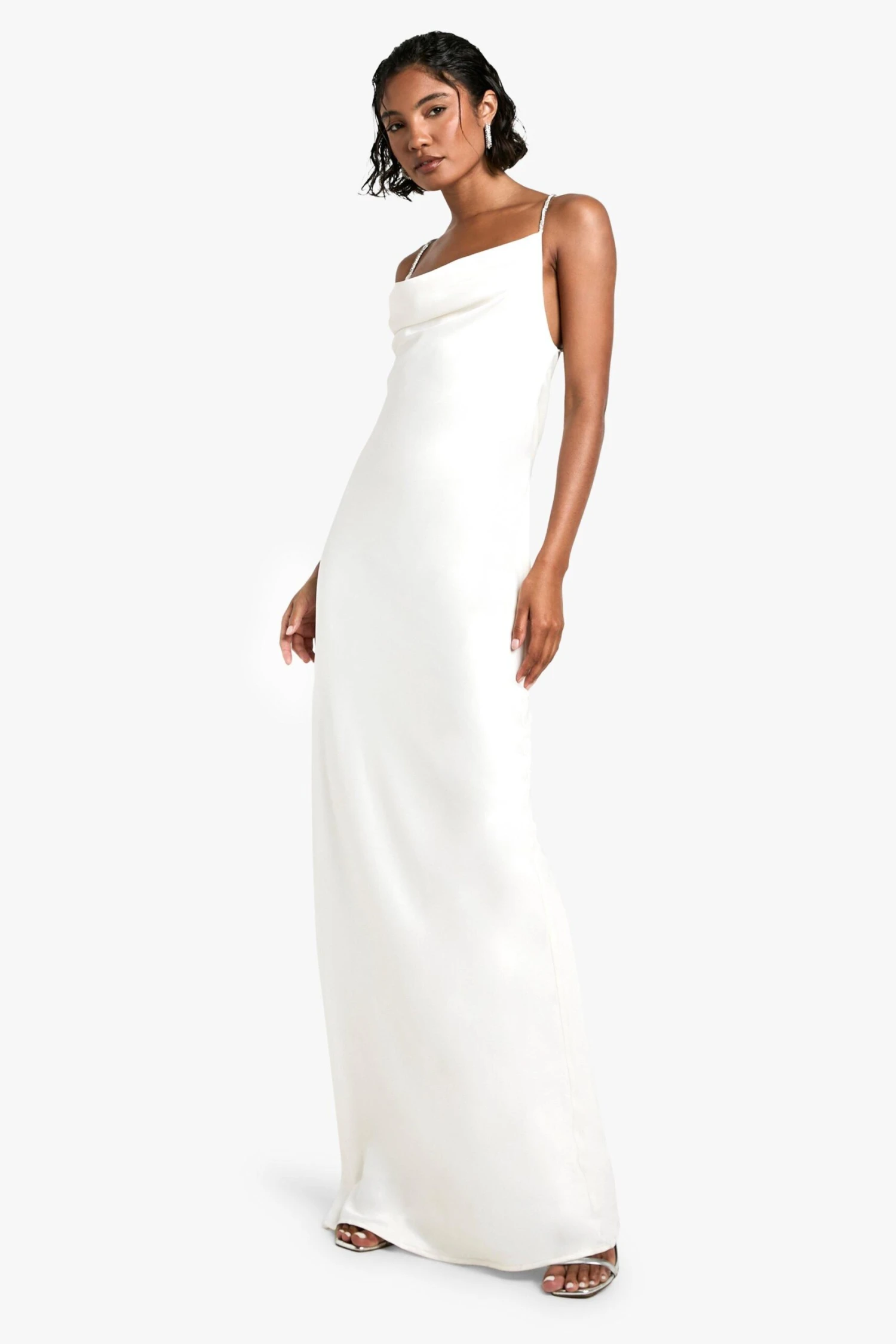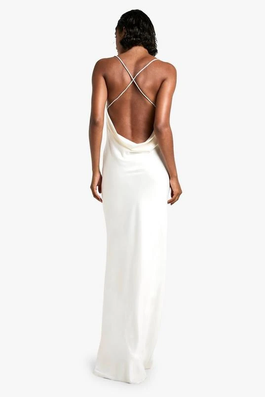 BOOHOO Tall Cowl Diamante Detail Satin Slip Maxi