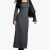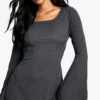 BOOHOO Tall Crinkle Square Neck Flared Midi Dress