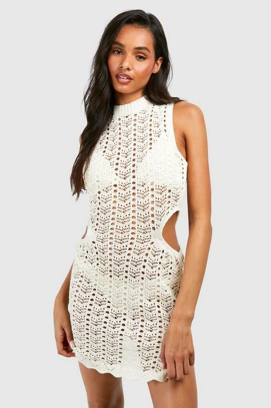 BOOHOO Tall Crochet Cut Out Detail Mini Dress