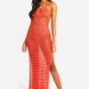 BOOHOO Tall Crochet Knitted Halterneck Beach Midaxi Dress
