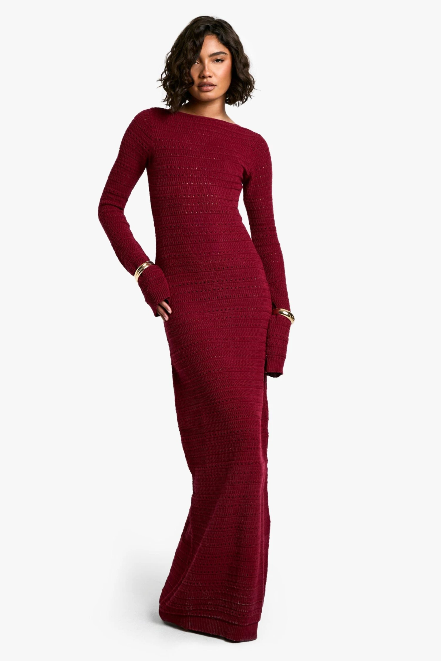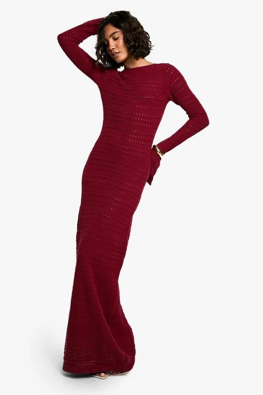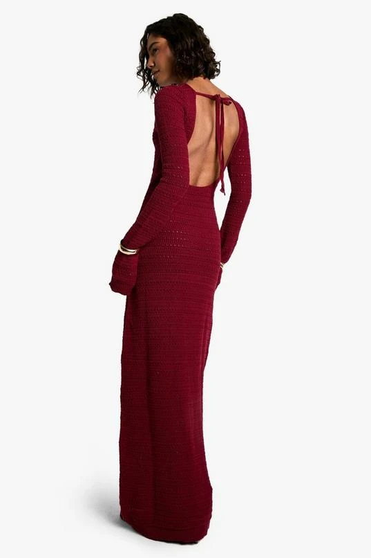 BOOHOO Tall Crochet Tie Back Knitted Maxi Dress