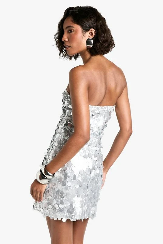 BOOHOO Tall Disc Sequin Bandeau Mini Dress