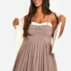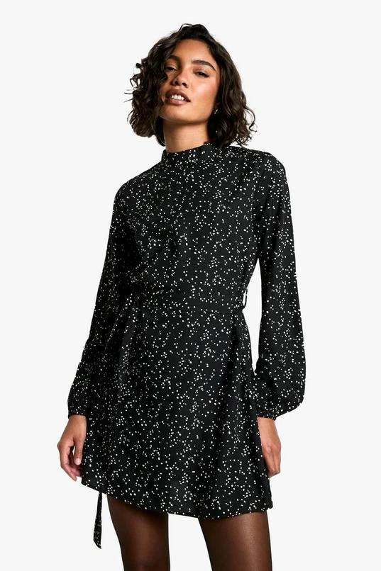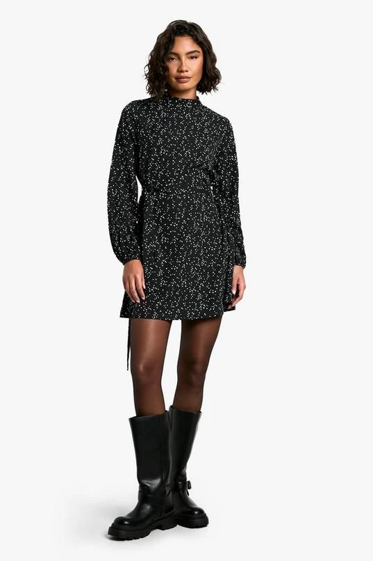 BOOHOO Tall Ditsy Spot Print Belted Skater Dress