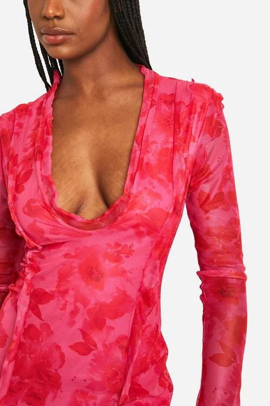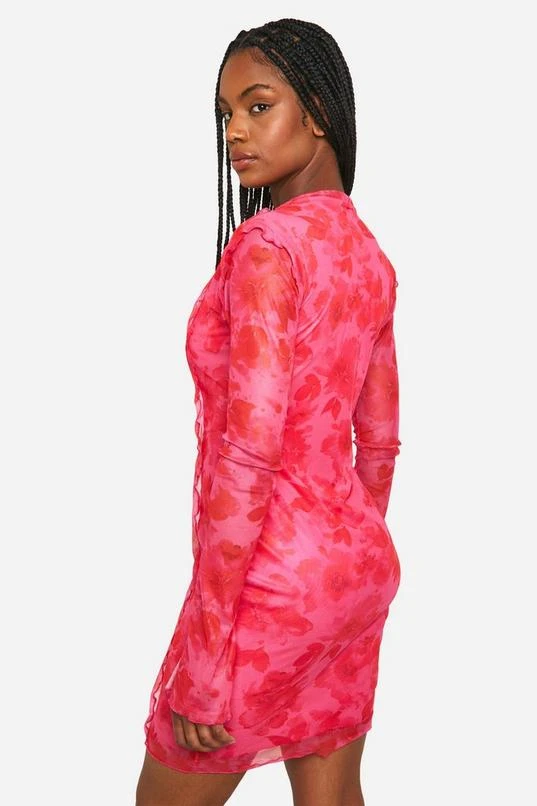 BOOHOO Tall Floral Mesh Frill Mini Dress