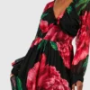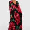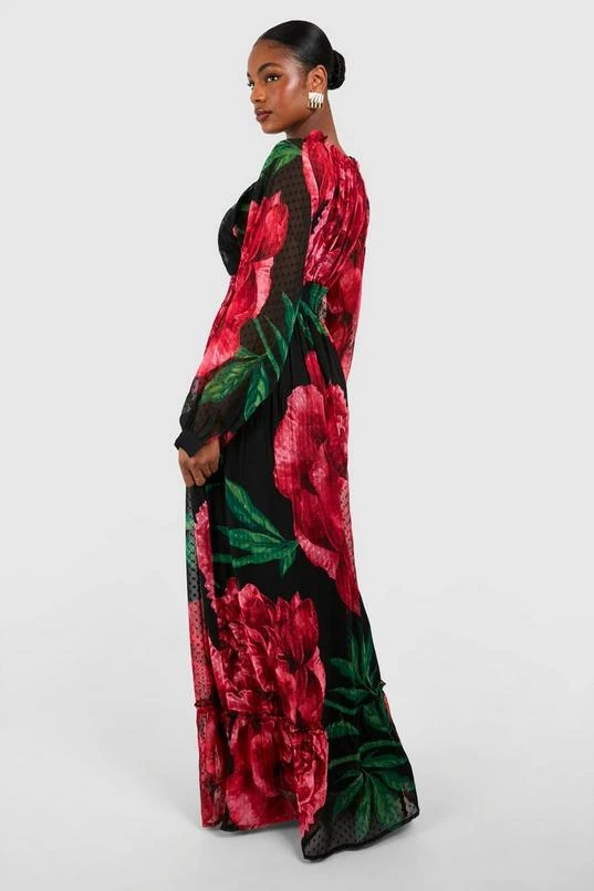 BOOHOO Tall Floral Print Dobby Shirred Maxi Dress