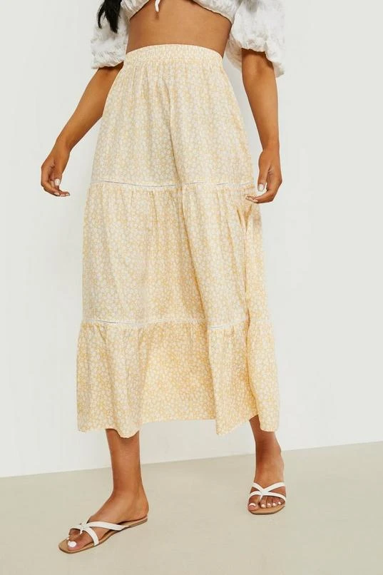 BOOHOO Tall Floral Print Tiered Midi Skirt