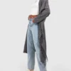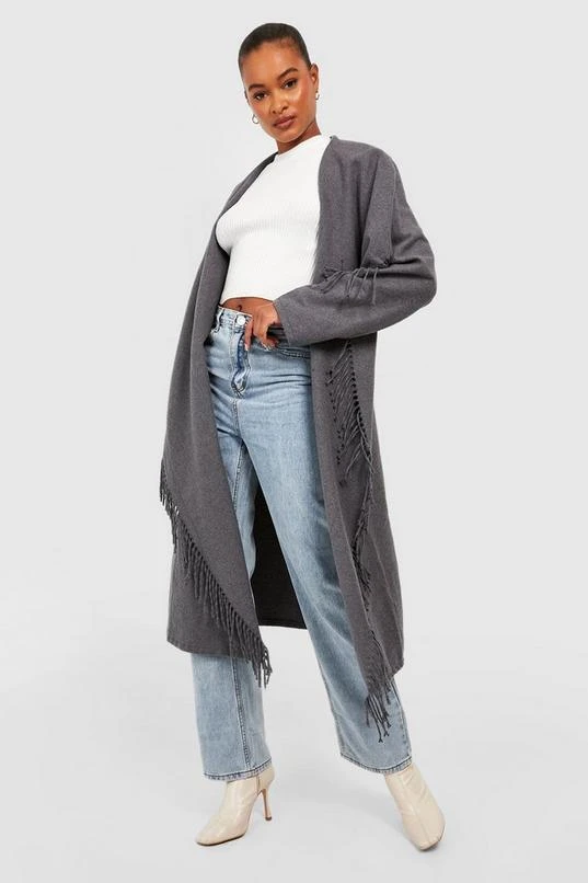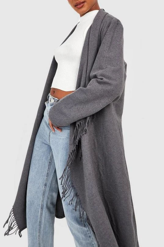 BOOHOO Tall Fringe Edge Waterfall Wool Look Coat
