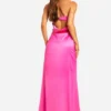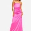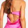 BOOHOO Tall Heavy Satin Bandeau Cowl Back Maxi Dress