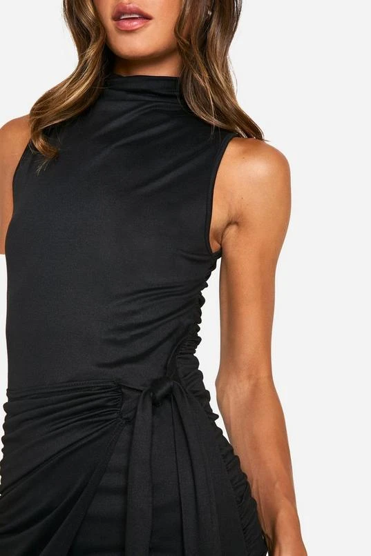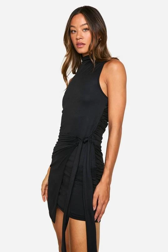 BOOHOO Tall High Neck Sleeveless Wrap Mini Dress