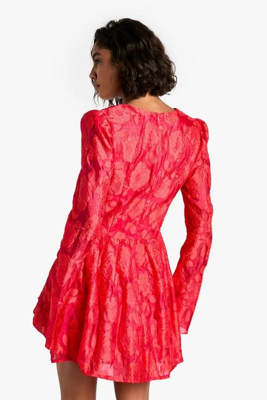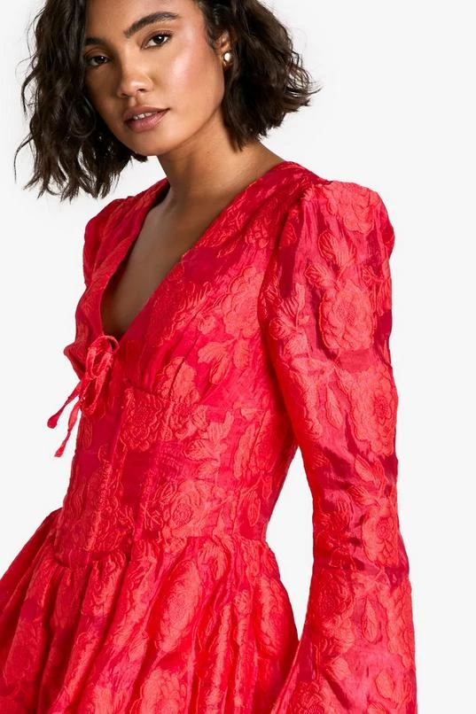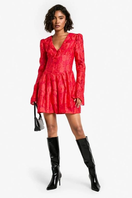 BOOHOO Tall Jacquard Floral Corset Detail Skater Dress
