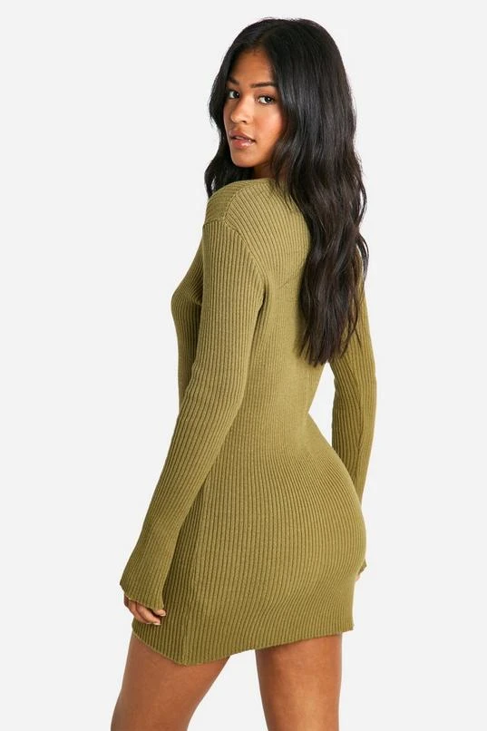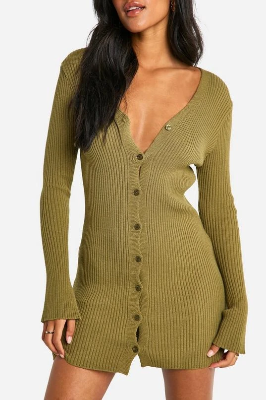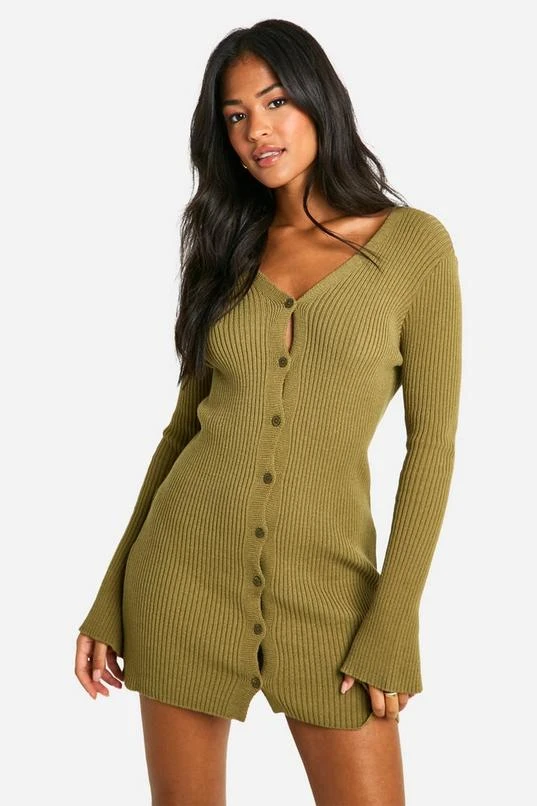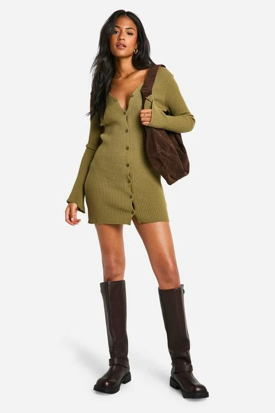BOOHOO Tall Knitted Rib Button Through Mini Dress