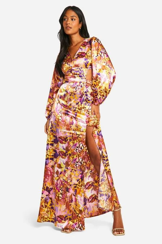 BOOHOO Tall Leopard Floral Cut Out Maxi Dress