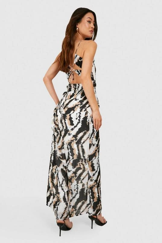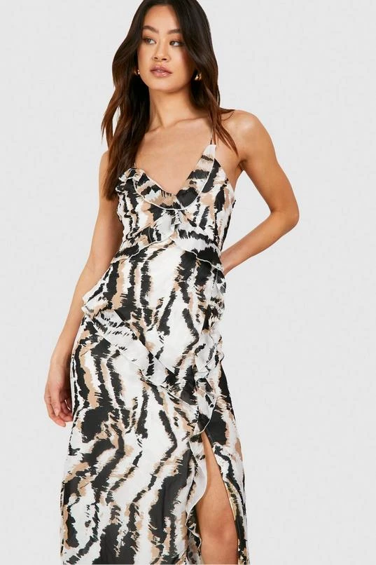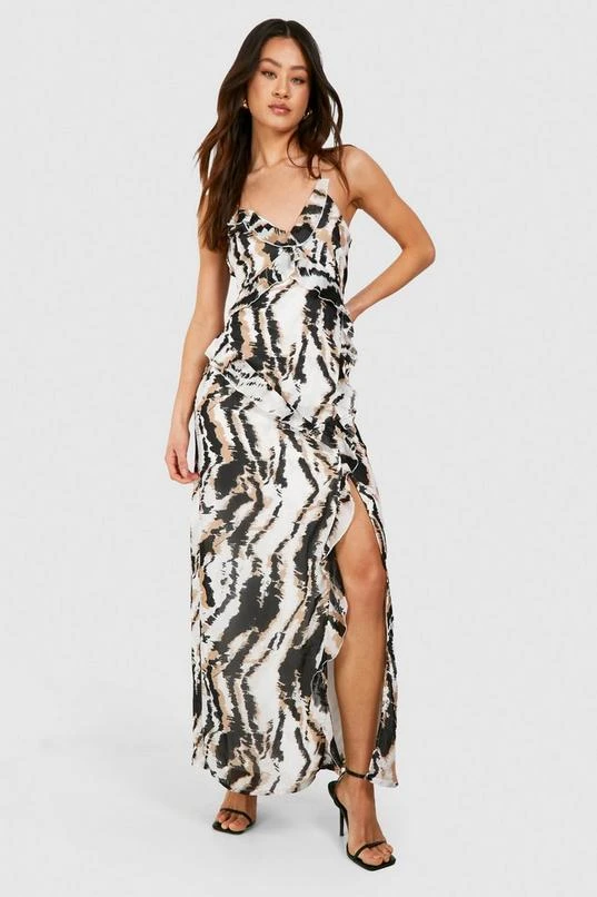 BOOHOO Tall Leopard Print Chiffon Ruffle Maxi Dress