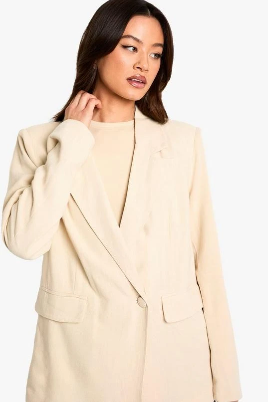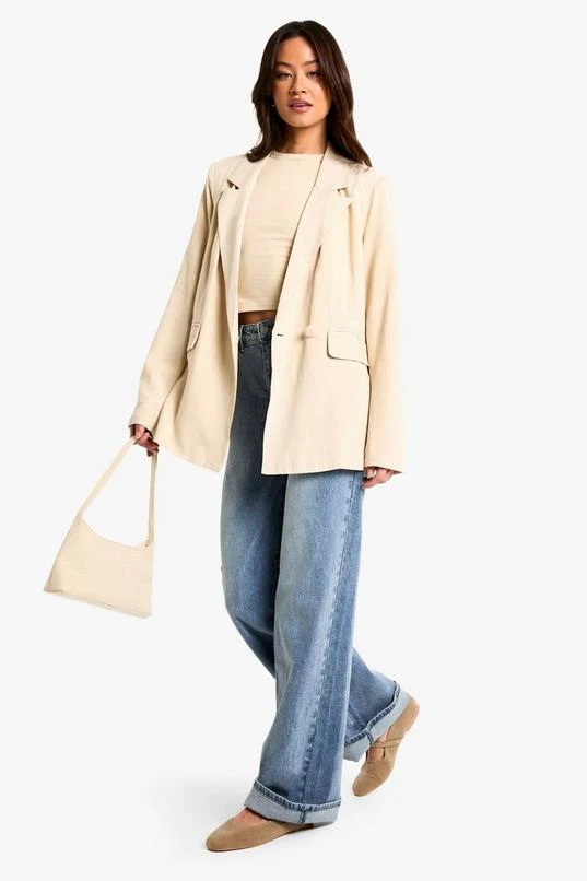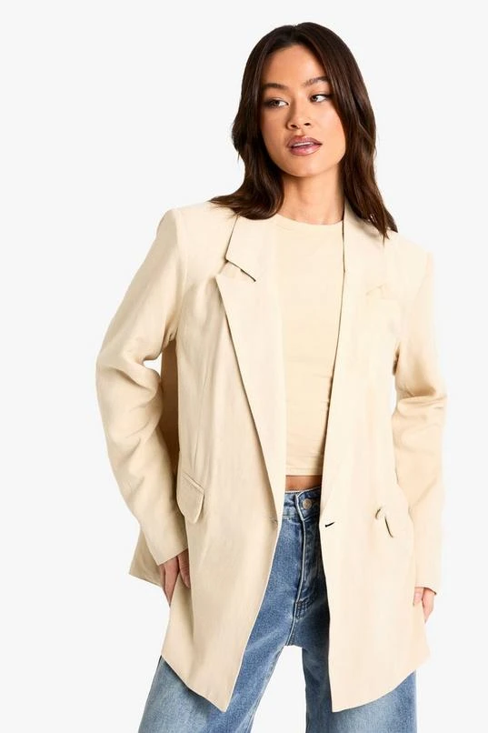 BOOHOO Tall Linen Look Cinched Waist Blazer