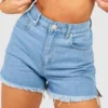 BOOHOO Tall Mid Rise Frayed Hem Mini Jean Shorts