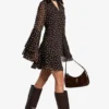 BOOHOO Tall Polkadot Flare Sleeve Chiffon Smock Dress