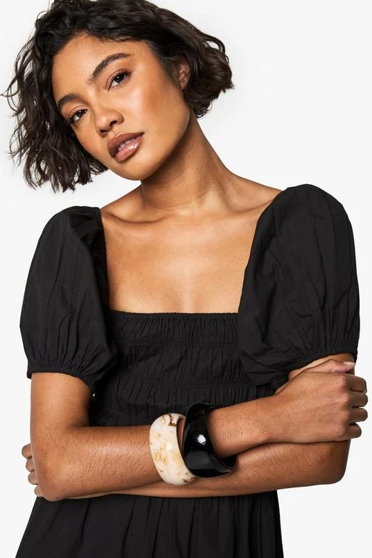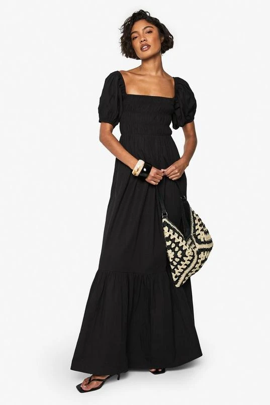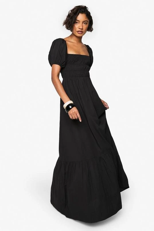 BOOHOO Tall Puff Sleeve Shirred Midaxi Dress