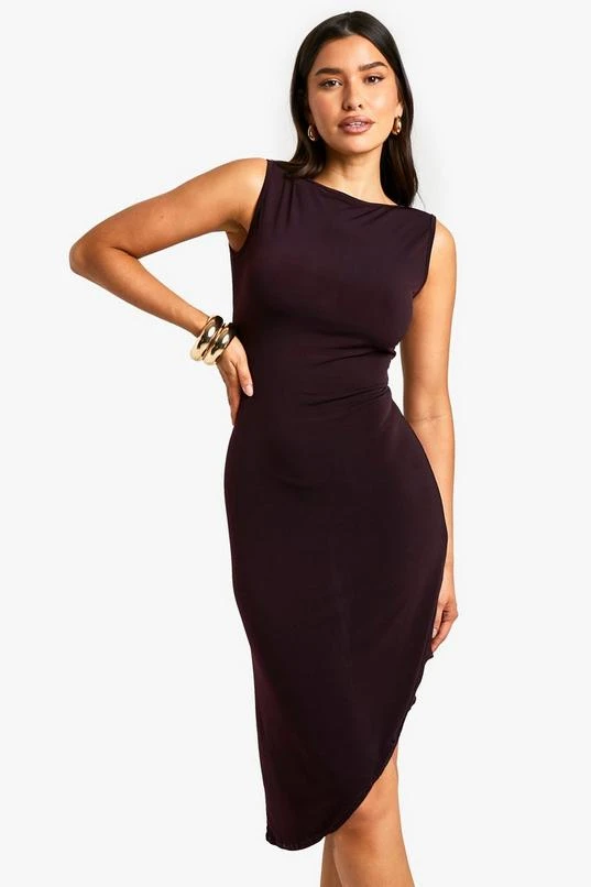 BOOHOO Tall Racer Asymmetric Hem Midi Dress