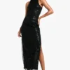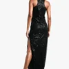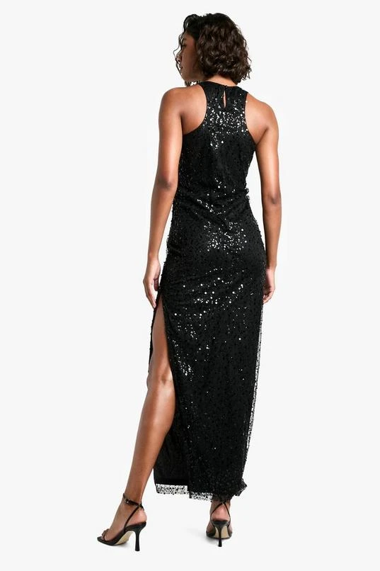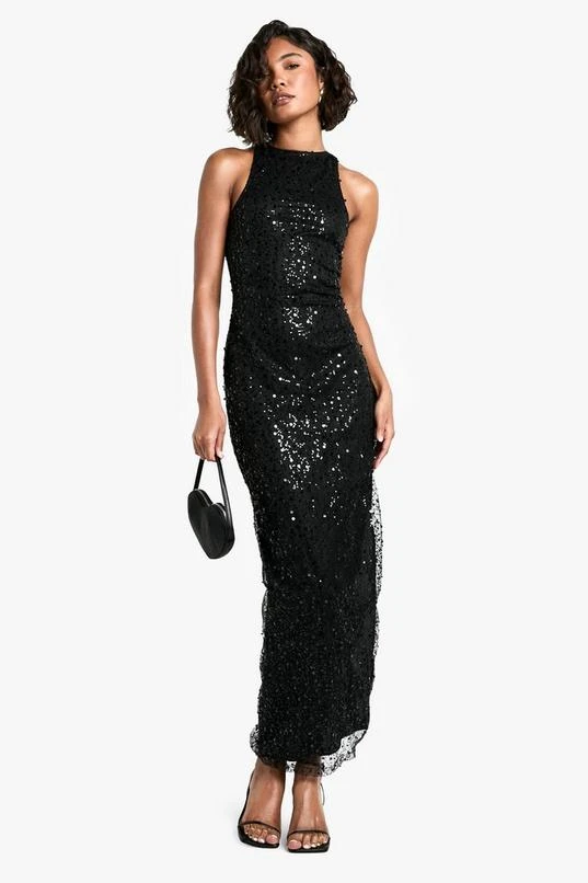BOOHOO Tall Racer Neck Beaded Sequin Maxi Dress