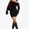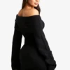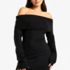 BOOHOO Tall Rib Bardot Neckline Mini Jumper Dress