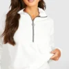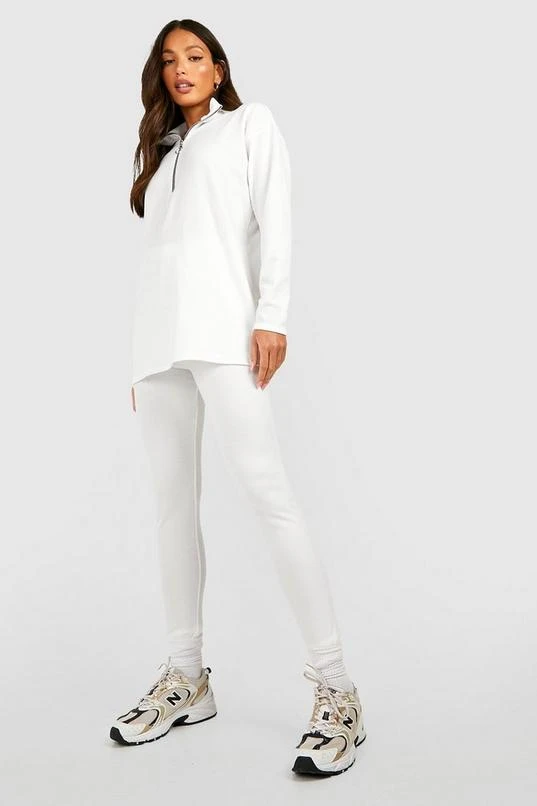 BOOHOO Tall Rib Half Zip Sweat Top And Legging Tracksuit