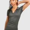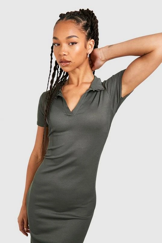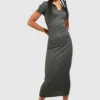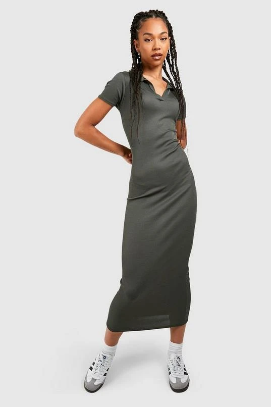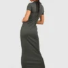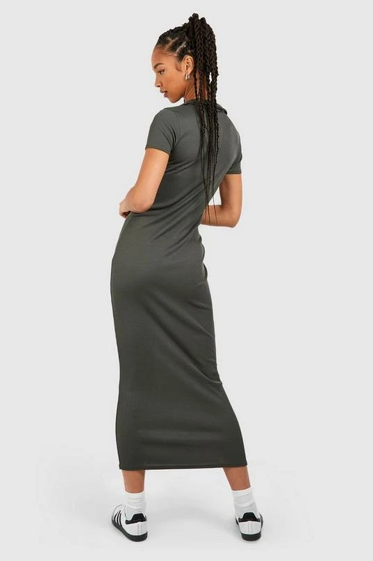 BOOHOO Tall Rib Open Collar Midaxi Column Dress