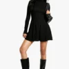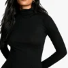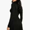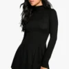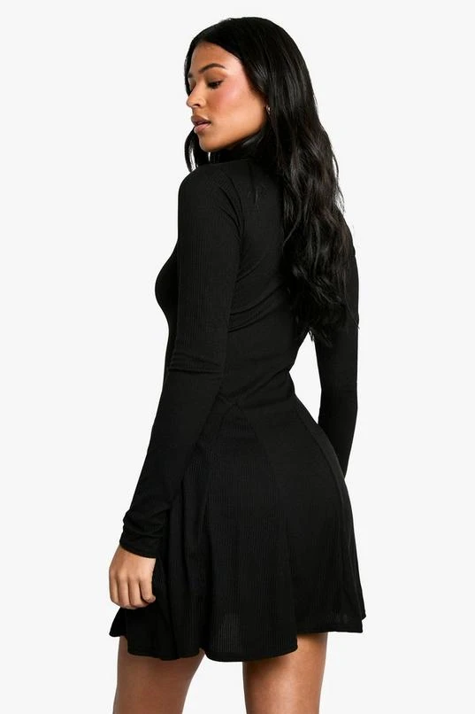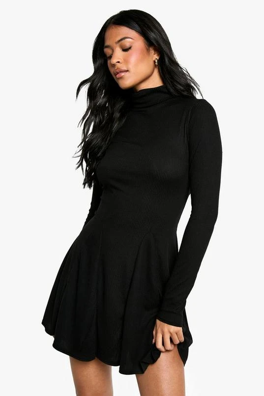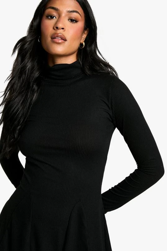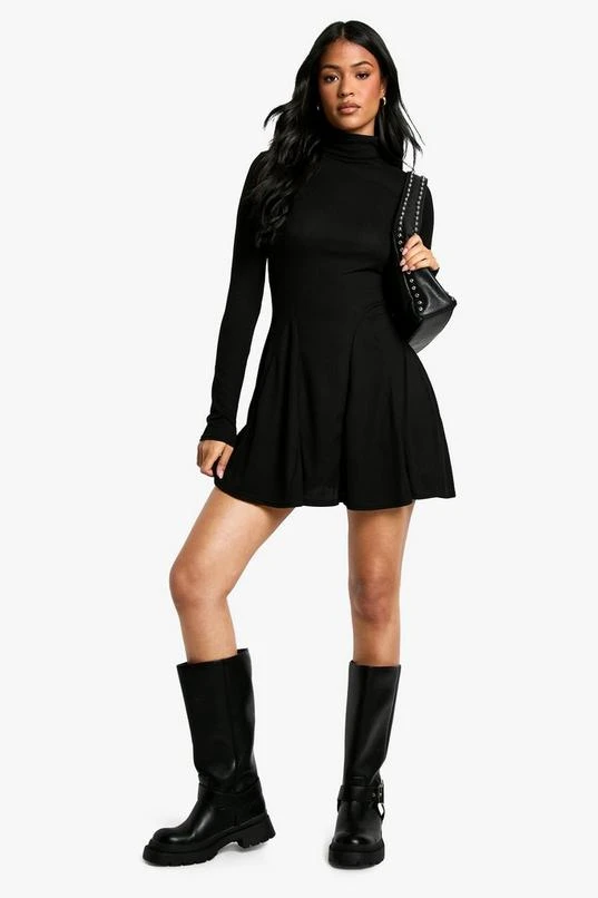 BOOHOO Tall Roll Neck Godet Hem Rib Skater Dress