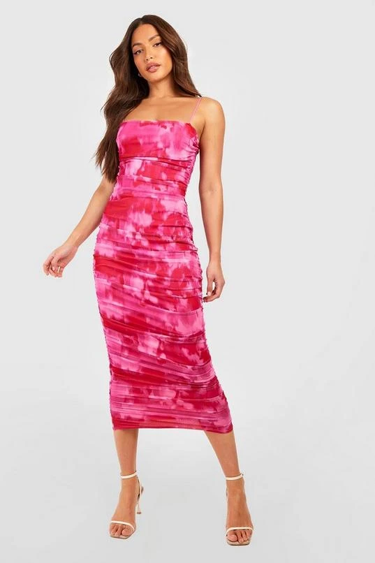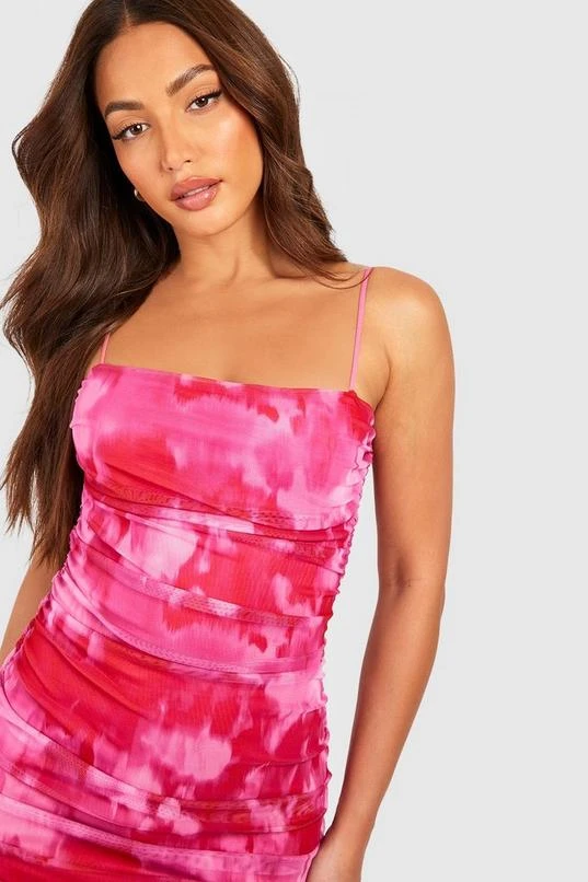 BOOHOO Tall Ruched Mesh Tie Dye Midi Dress