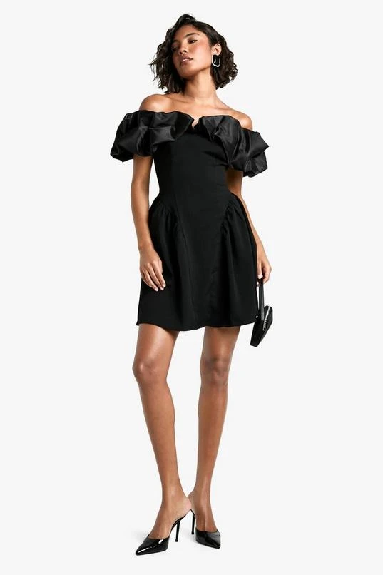 BOOHOO Tall Ruffle Dropped Waist Mini Dress