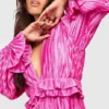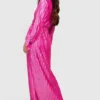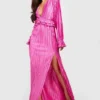 BOOHOO Tall Satin Plisse Ruffle Split Maxi Dress