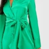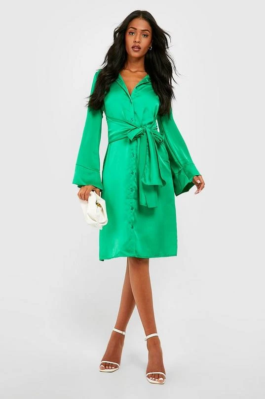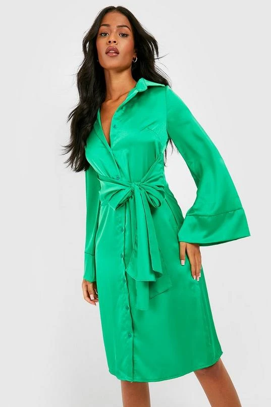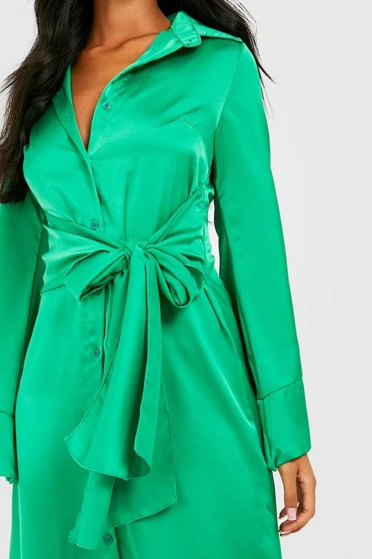 BOOHOO Tall Satin Tie Front Mini Shirt Dress