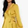 BOOHOO Tall Satin Wrap Over Occasion Dress