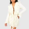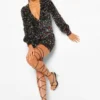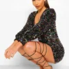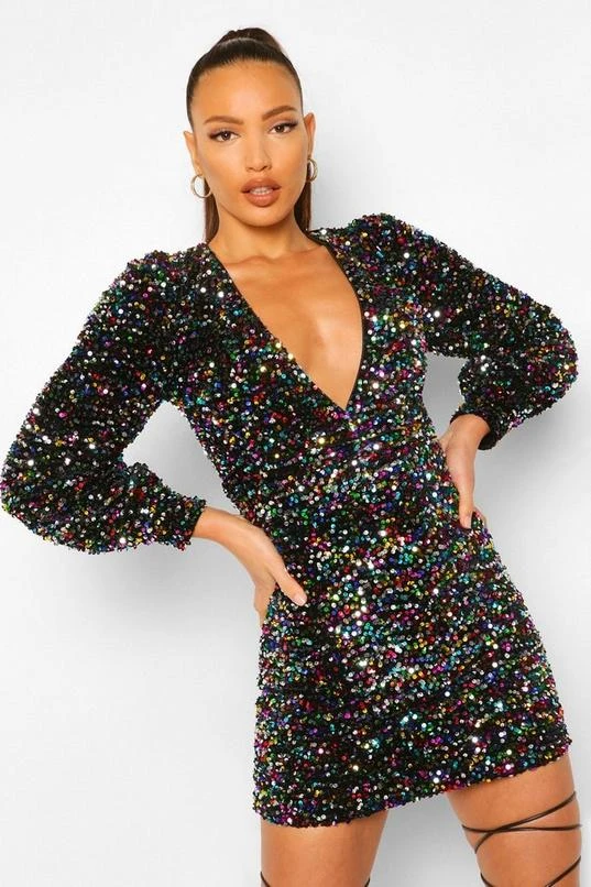 BOOHOO Tall Sequin Balloon Sleeve Plunge Mini Dress
